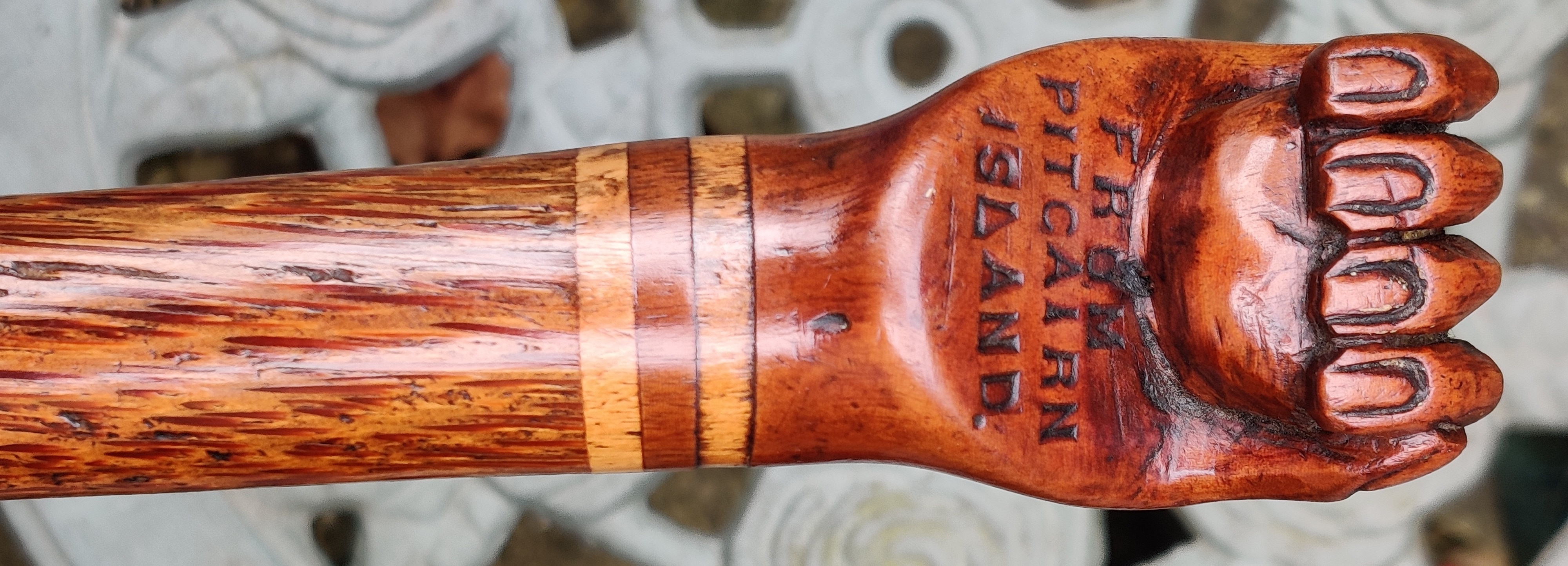 So, whilst pottering around the other day I found this, if remember I may well bring it to the next fair with a few other sticks. I have some made from Partridgewood, Blackthorn, Yew, Ash, this one, from Pitcairn I understand is Miso wood. A new timber to me, whilst it shares a similar colour to either Partridge, or one of the many oaks, there is a lot of information about this timber on the internet. Similar sticks from Pitcairn are in some museums around the world. Watch out next time you go out for a walk, I may well be using this! Happy wanderings! Andy.