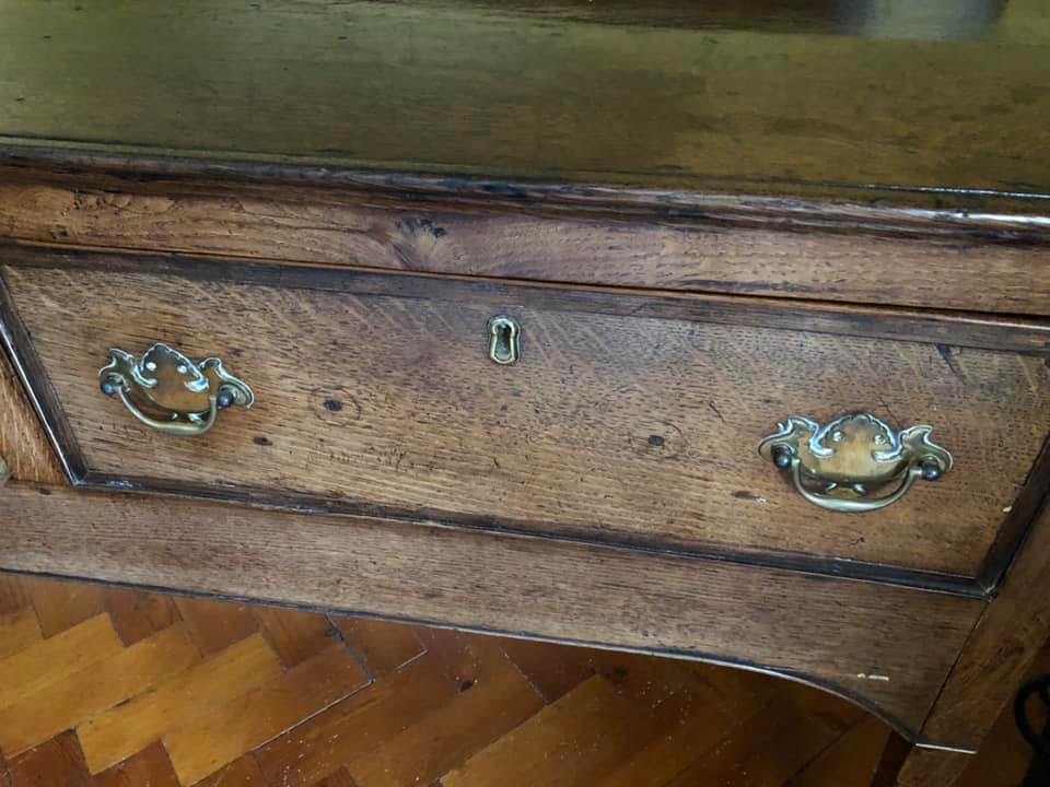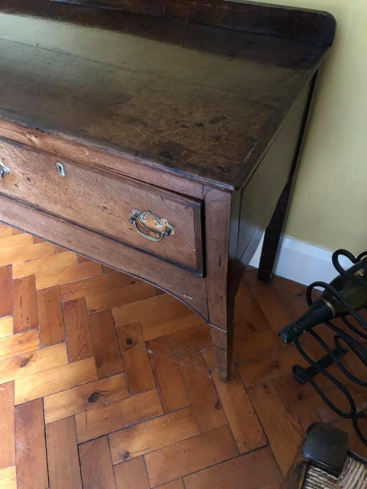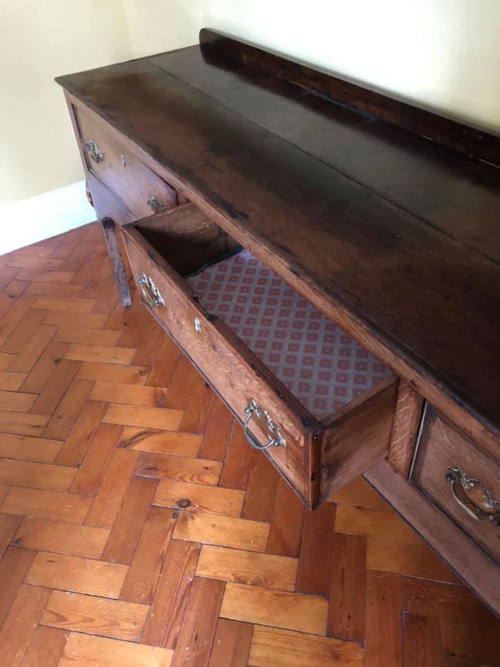Aha! Well, I have just found an Oak Dresser which needs a little “Chuckling” as a colleague used to say. Well, here it is, around 6′ long, the handles are obviously replacements, but have been on for a long time, so I’ll leave them alone until someone worries about it, (I have old ones from other projects if needed!), all part of the history of the piece! Well, here it is as I got it, and I expect to have it ready for sale in November, yes, that won’t be long! I’ll just revive the polish and enhance it a little then give it a walloping wax and buff. Shout if you are interested. NOW RESERVED! Thanks, Andy.