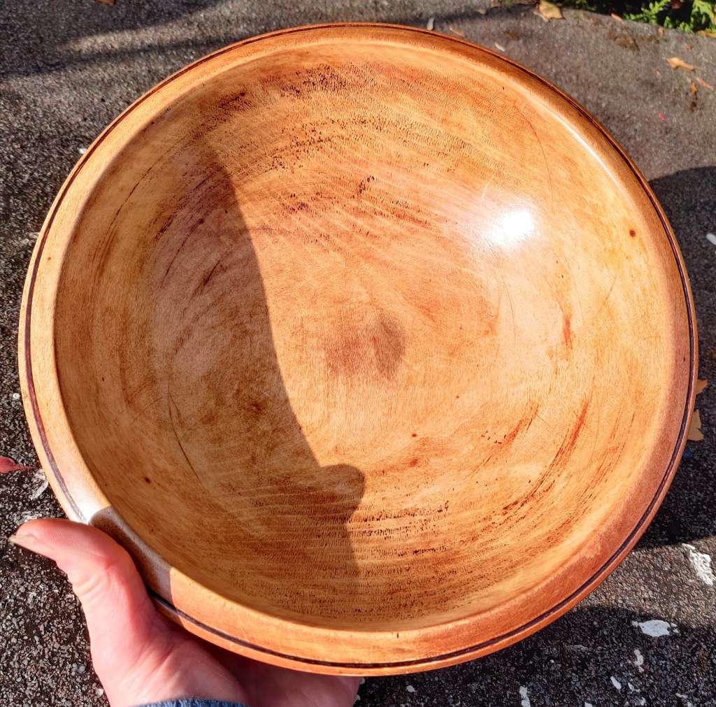 Well, Bibury Antiques Fair is having a break until the spring…….. BUT…….. Should people have time over the weekend of 23rd and 24th November, there’s an antiques fair on at The Holt Hotel, Steeple Aston, Oxfordshire. I’m bowled over, and going to be there again! Oh yes, and I’ll have this Sycamore Dairy Bowl with me, and I think it’s got a good colour and patina, but I’ll have to let you decide if you agree! This bowl is about 12″ in diameter, and 3 1/2″ high. Here it is….. The link for the Holt event is http://www.antiques-at-the-holt.co.uk/ Maybe see you there, and if I remember rightly, the steak sandwiches are very nice there too!